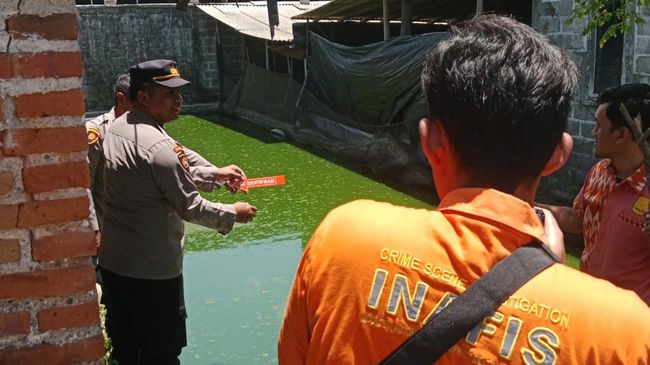 Polisi kemudian melakukan oleh TKP, diketahui kolam ikan memiliki panjang 190 cm, lebar 163 cm, dan tinggi 55 cm.